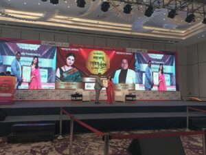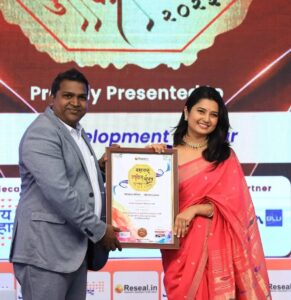 Mr. Ravi Alat taking Awards from Marathi Actress Prajakta Mali